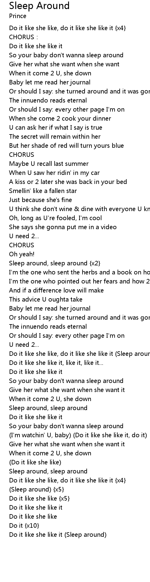 | Do it like she like it Sleep around |