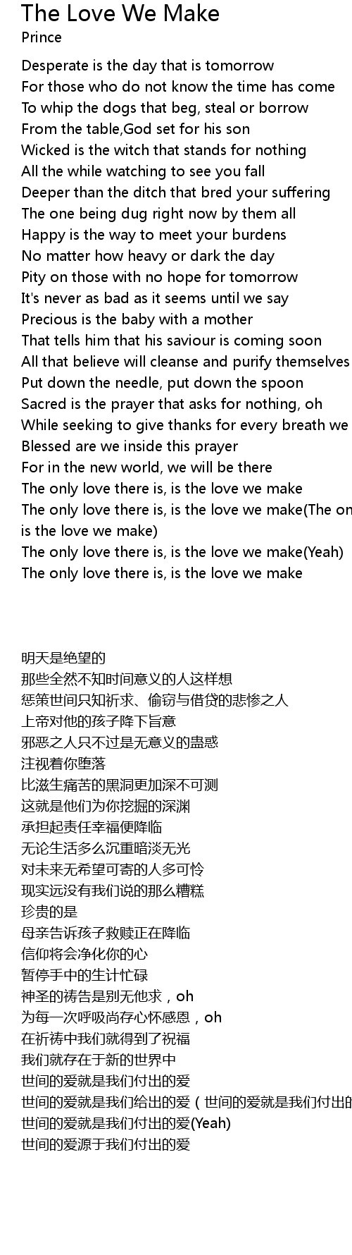 The only love there is, is the love we make(Yeah) |