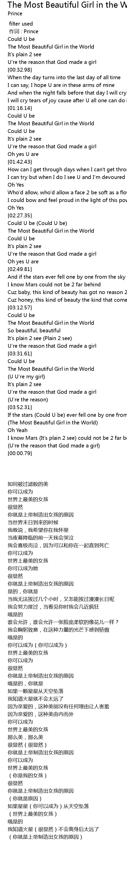 | [04:00.09] | (The Most Beautiful Girl in the World) |