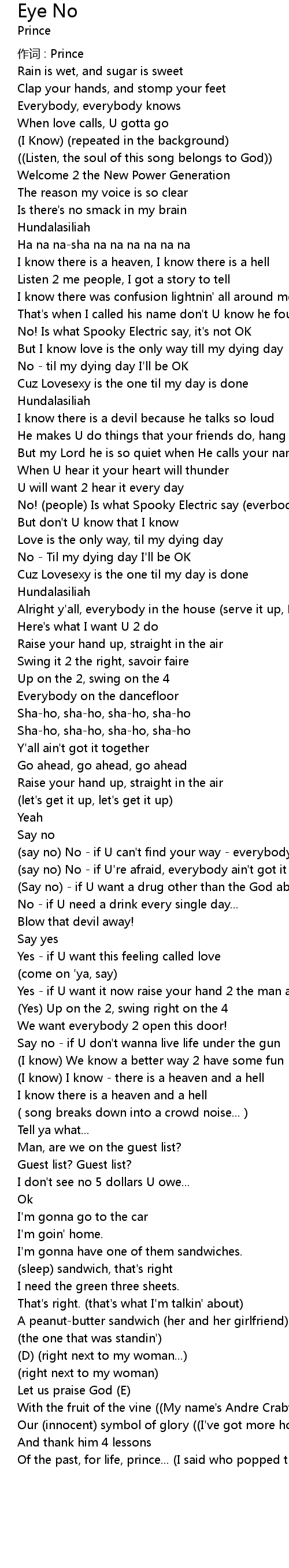 | 作词 : Prince | |