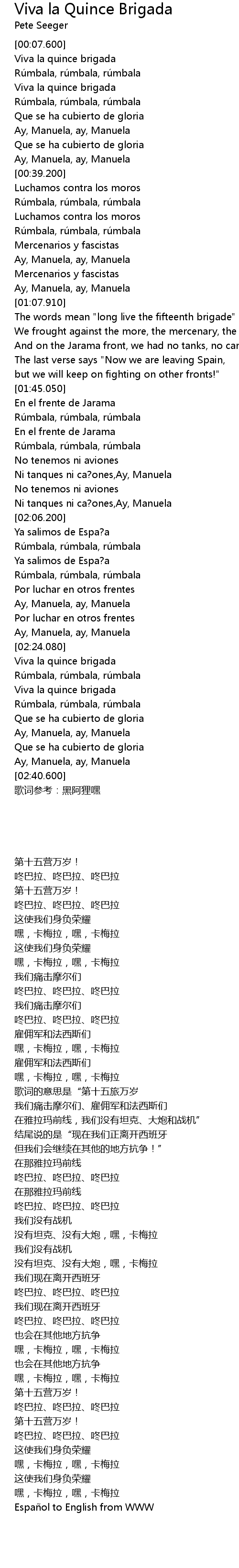 | [01:24.530] | The words mean " long live the fifteenth brigade" |