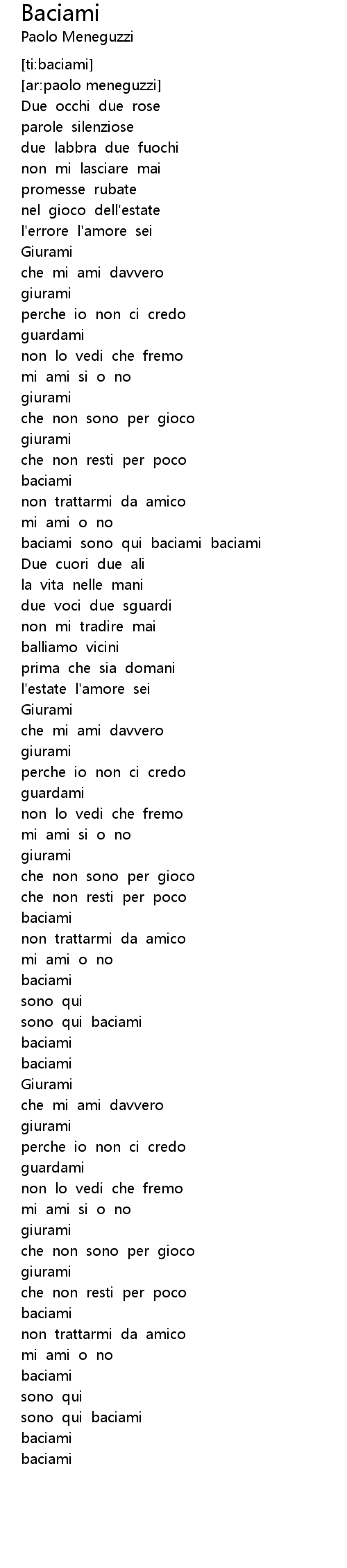 | [00:56.513] | baciami sono qui baciami baciami |