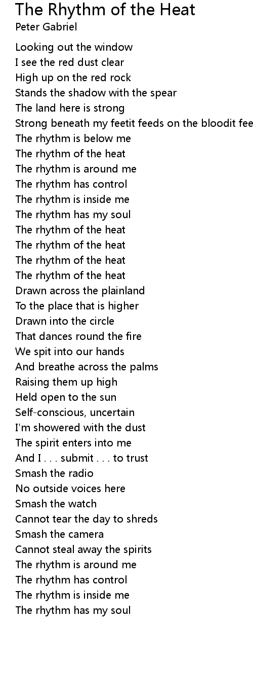 Strong beneath my feetit feeds on the bloodit feeds on the heat |