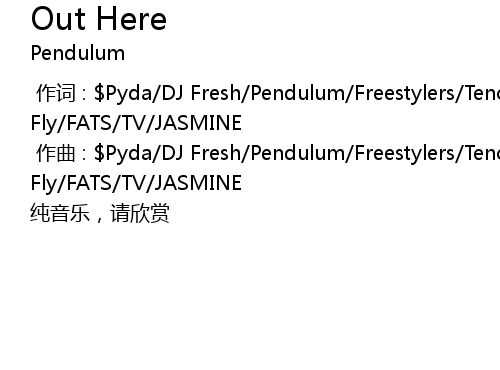 | [00:01.000] | 作曲 : $Pyda/DJ Fresh/Pendulum/Freestylers/Tenor Fly/FATS/TV/JASMINE |
