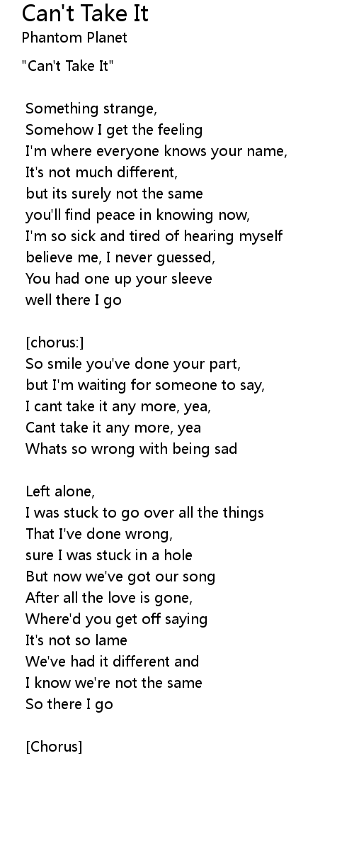 I cant take it any more, yea, |