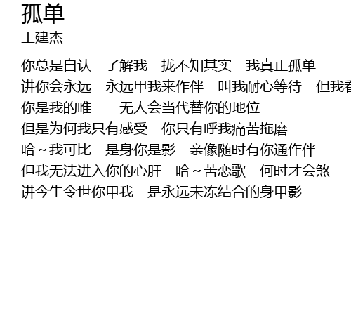 | 你总是自认 了解我 拢不知其实 我真正孤单 | |