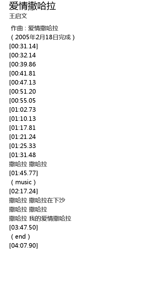 | [03:40.42] | sa ha la wo de ai qing sa ha la |