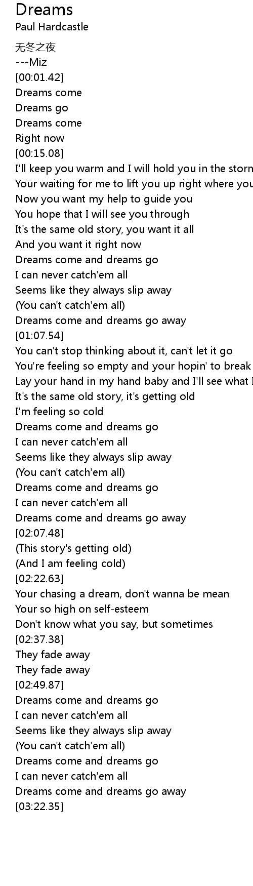 | [02:25.51] | Your chasing a dream, don't wanna be mean |