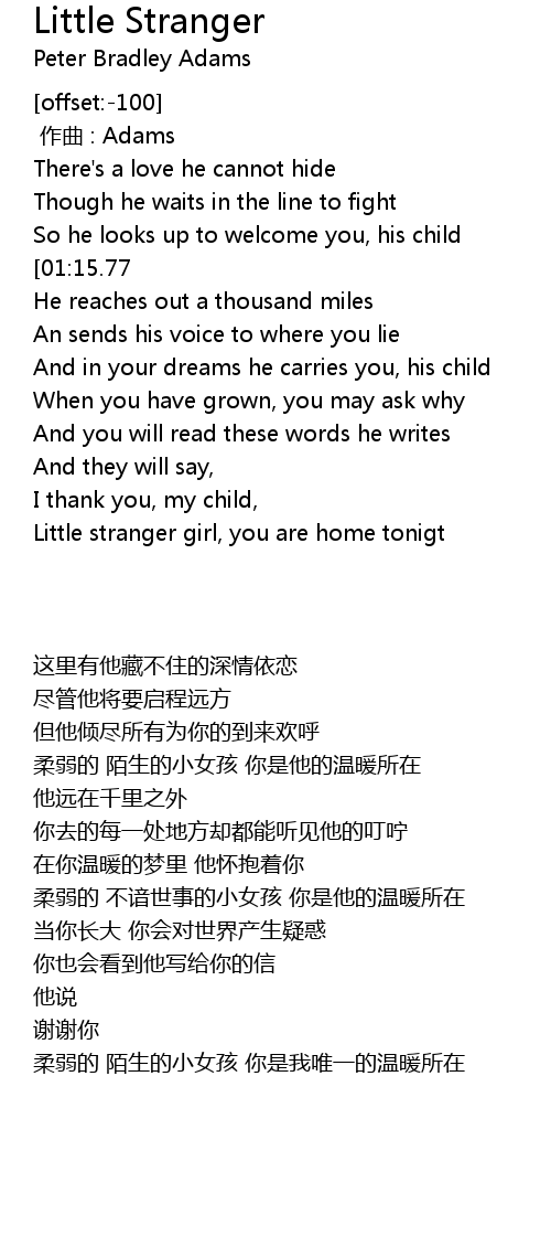 | [00:45.20][01:15.77] | Little stranger girl, you are home tonight |