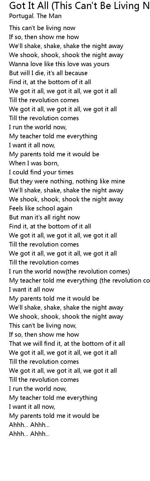 Got It All (This Can't Be Living Now) Lyrics
