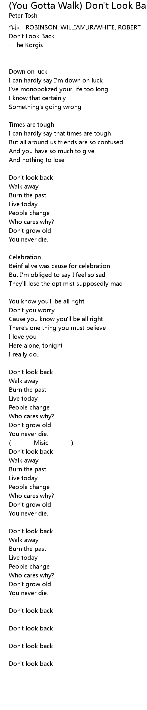 | Don' t look back | |