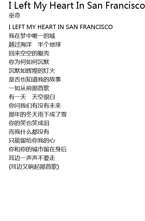 | I LEFT MY HEART IN SAN FRANCISCO | |