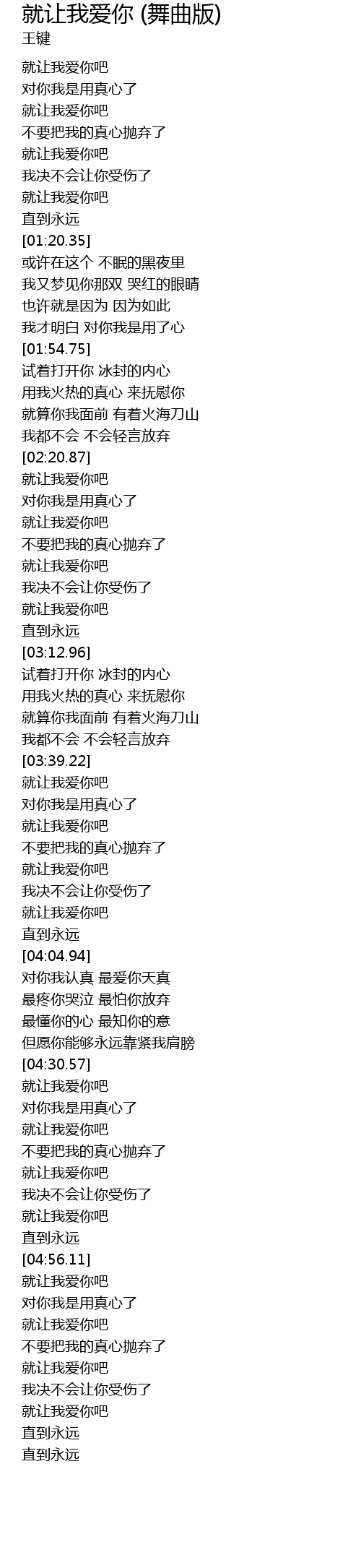 | [04:38.06] | jiù ràng wǒ ài nǐ ba |
