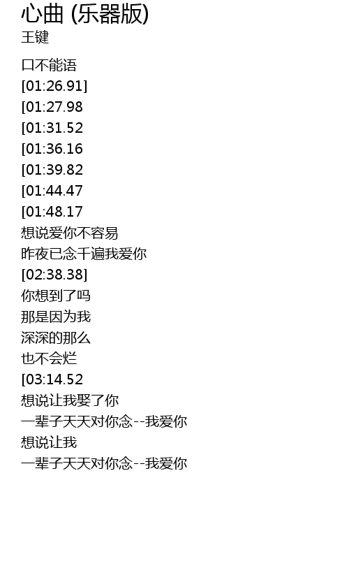 | [03:52.33] | 一辈子天天对你念--我爱你 |