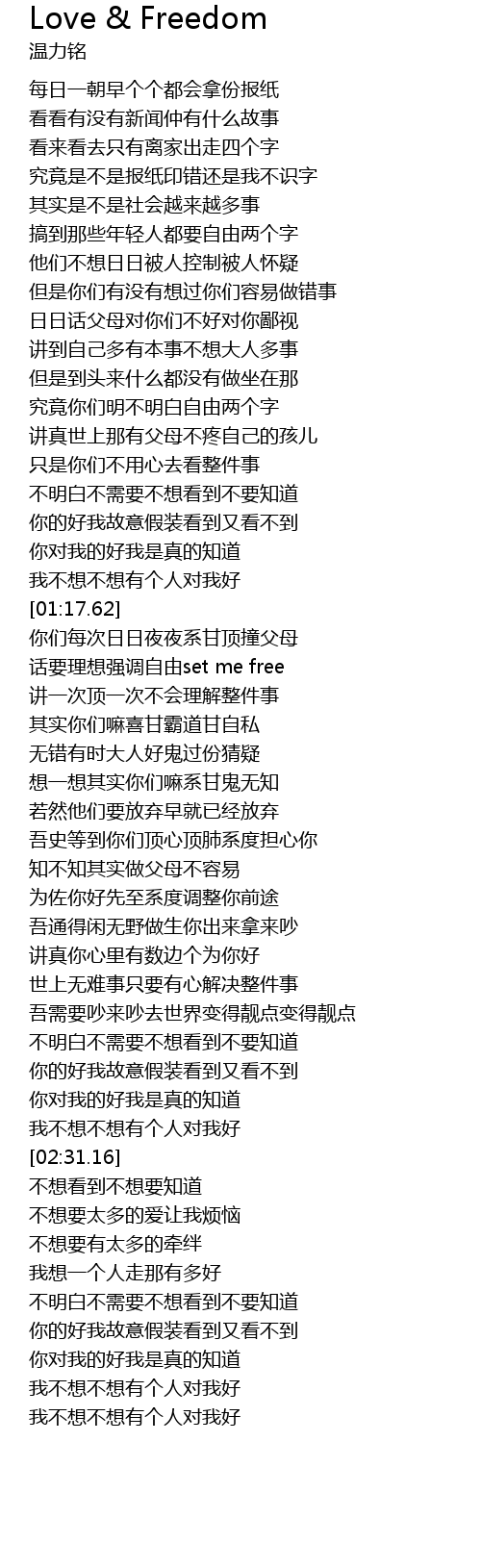 | [00:28.33] | 搞到那些年轻人都要自由两个字 |
