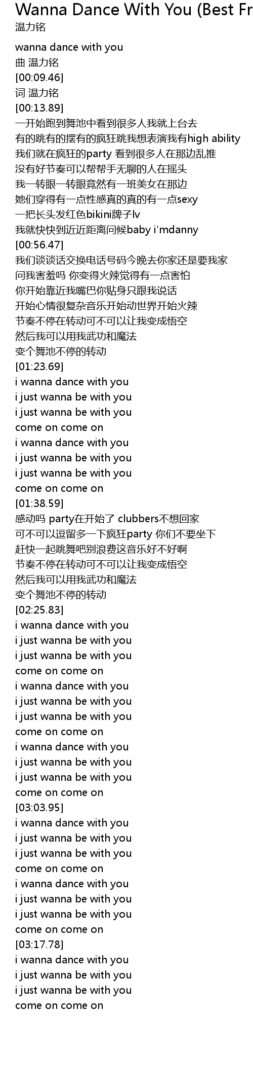 | [00:53.49] | wo jiu kuai kuai dao jin jin ju li wen hou baby i' mdanny |