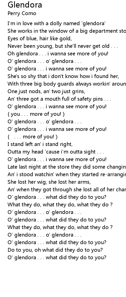 | I'm in love with a dolly named 'glendora' | |