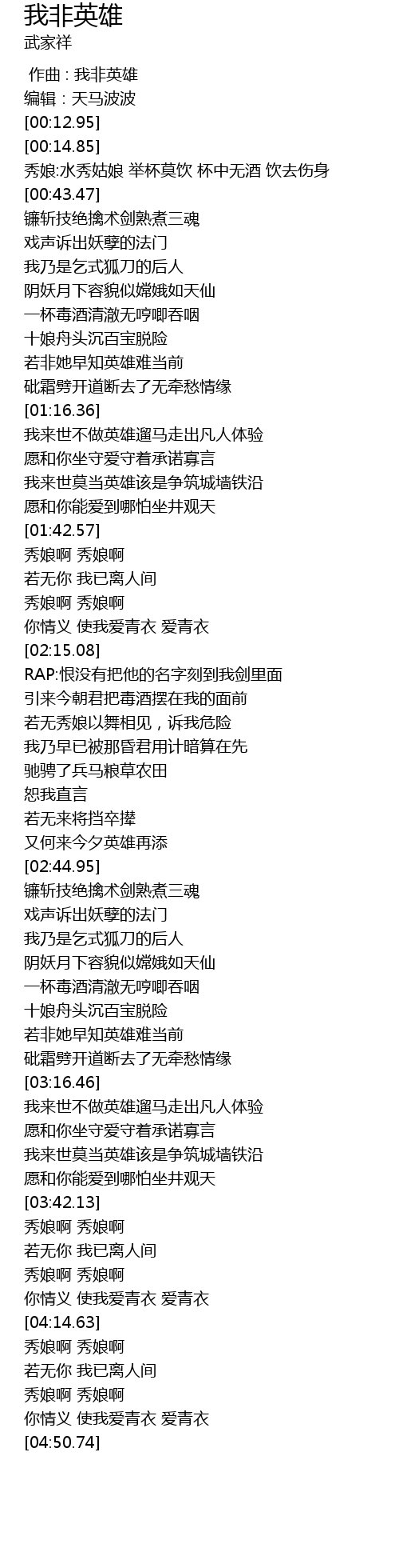 | [00:00.00] | zuo qu : wo fei ying xiong |