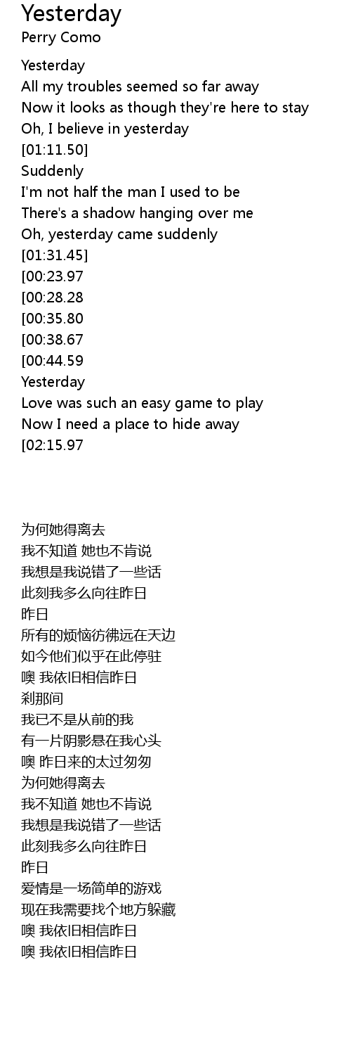 [02:23.75][02:15.97] Oh, I believe in yesterday