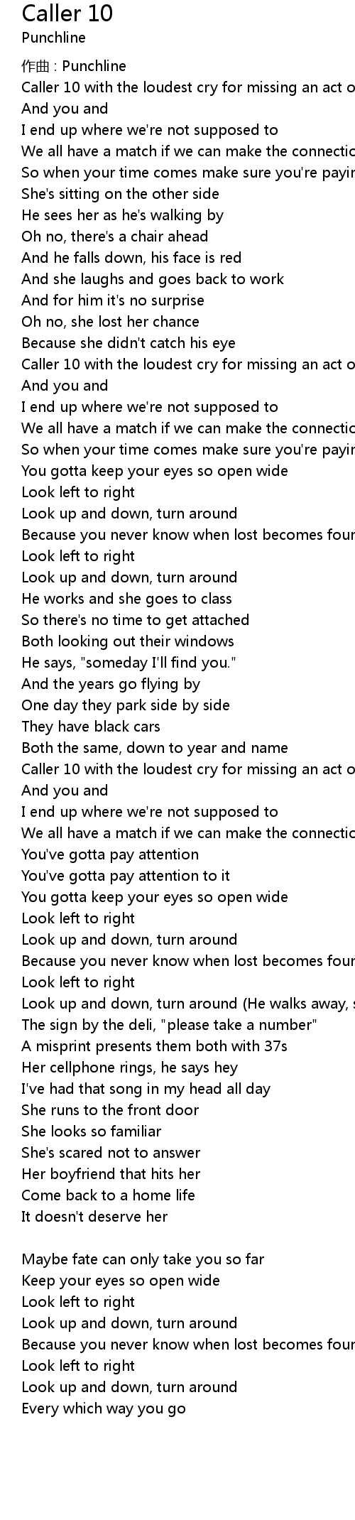 | Caller 10 with the loudest cry for missing an act of fate | |