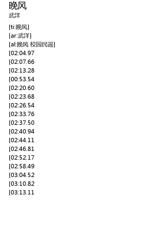 | [00:25.32][02:04.97] | 晚风 |