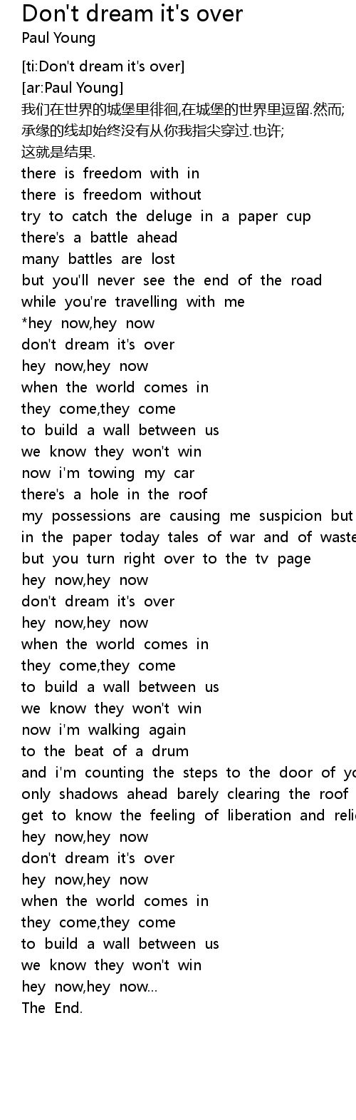 | [02:52.834] | don' t dream it' s over |