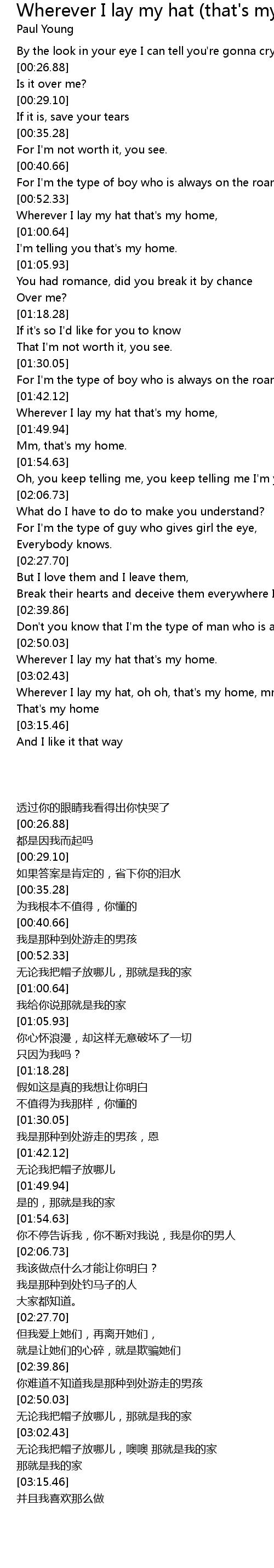 Wherever I lay my hat, oh oh, that's my home, mm yeh, |