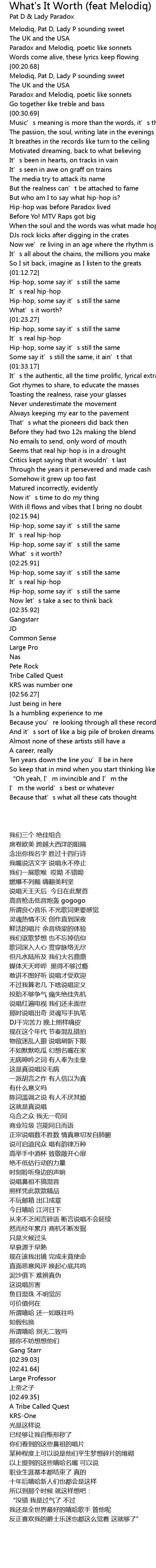 | [00:59.68] | When the soul and the words was what made hop hits |