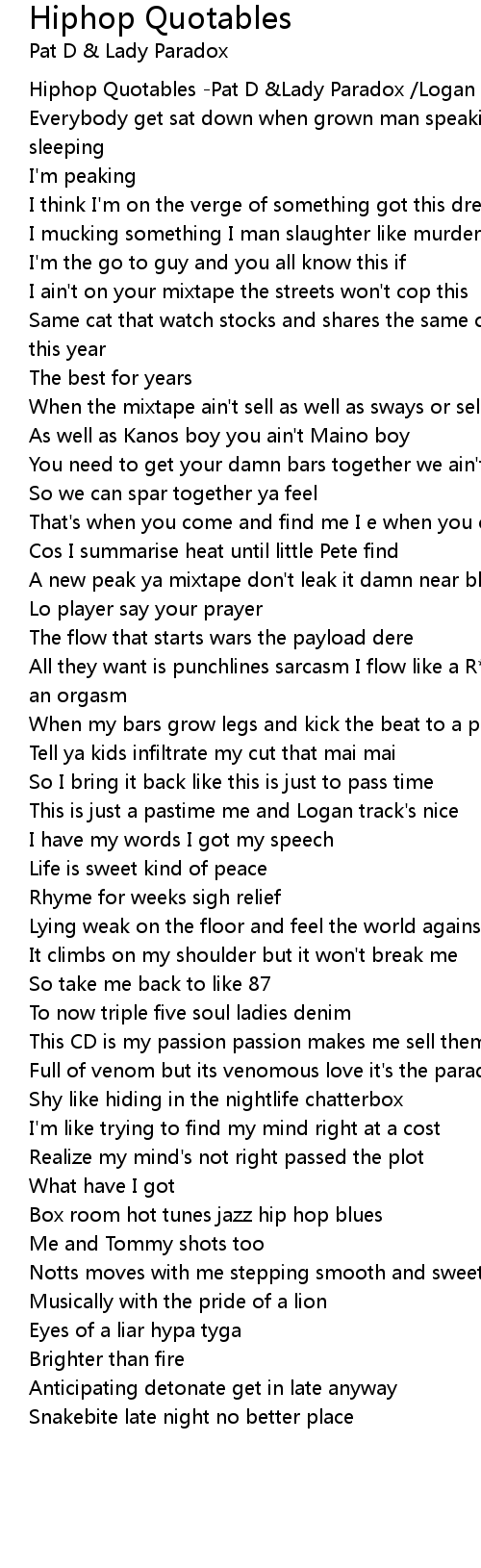 Hiphop Quotables -Pat D &Lady Paradox /Logan |