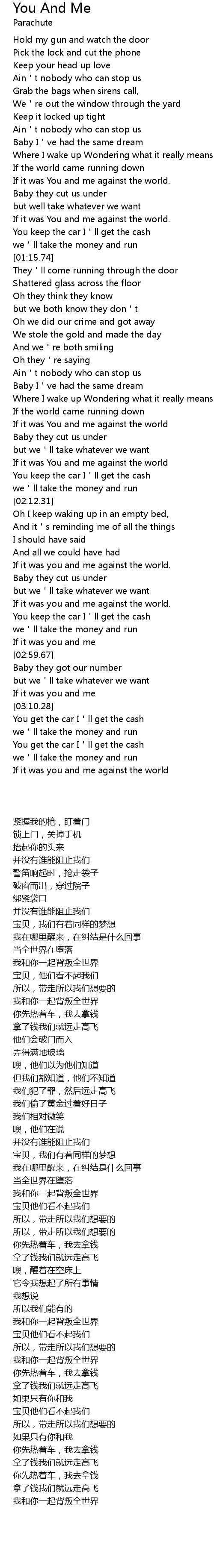 | [00:44.57] | If it was You and me against the world. |