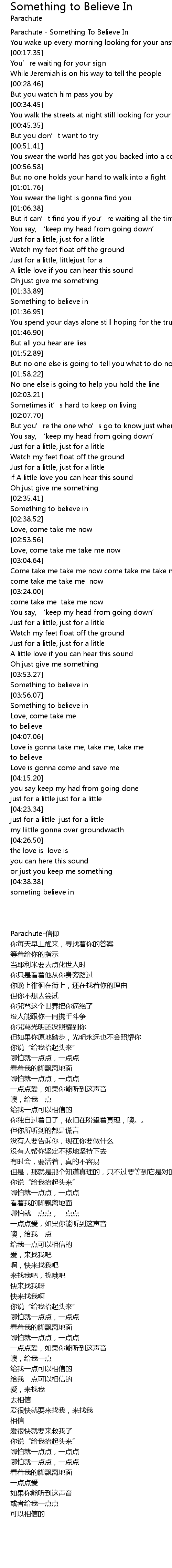 | [00:00.99] | Parachute - Something To Believe In |