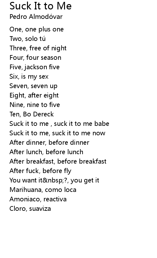| Suck it to me, suck it to me now | |