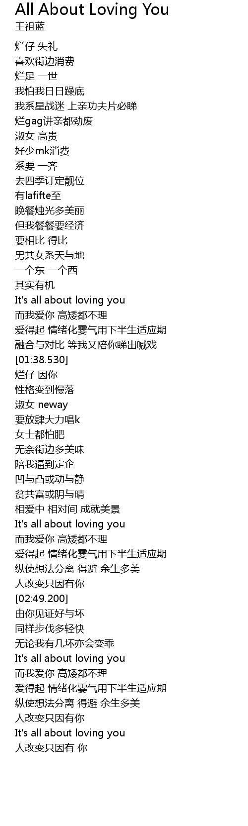 | [02:19.700] | It' s all about loving you |