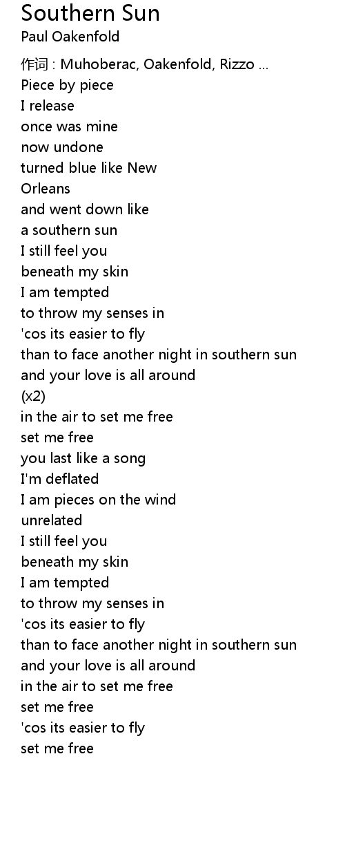 | 作词 : Muhoberac, Oakenfold, Rizzo ... | |