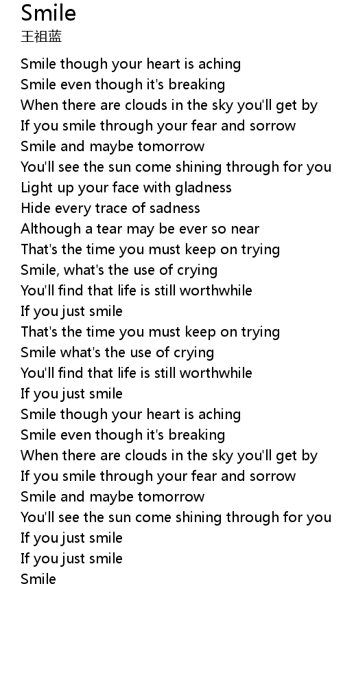 | [00:20.250] | Smile though your heart is aching |