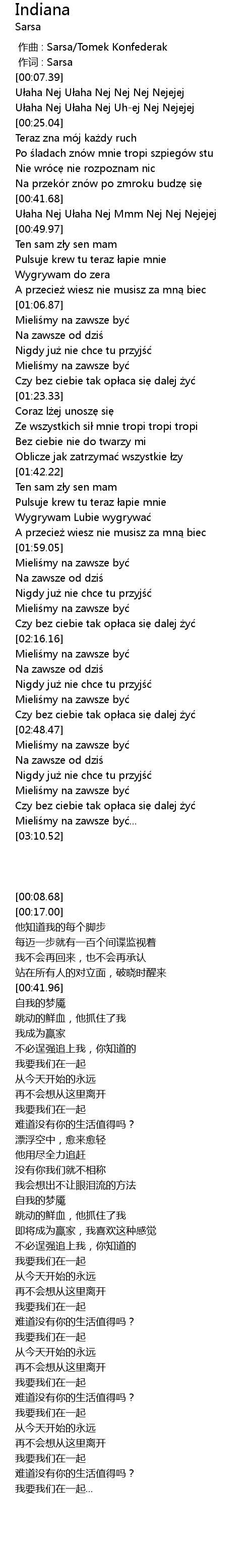| [00:00.00] | 作曲 : Sarsa/Tomek Konfederak |