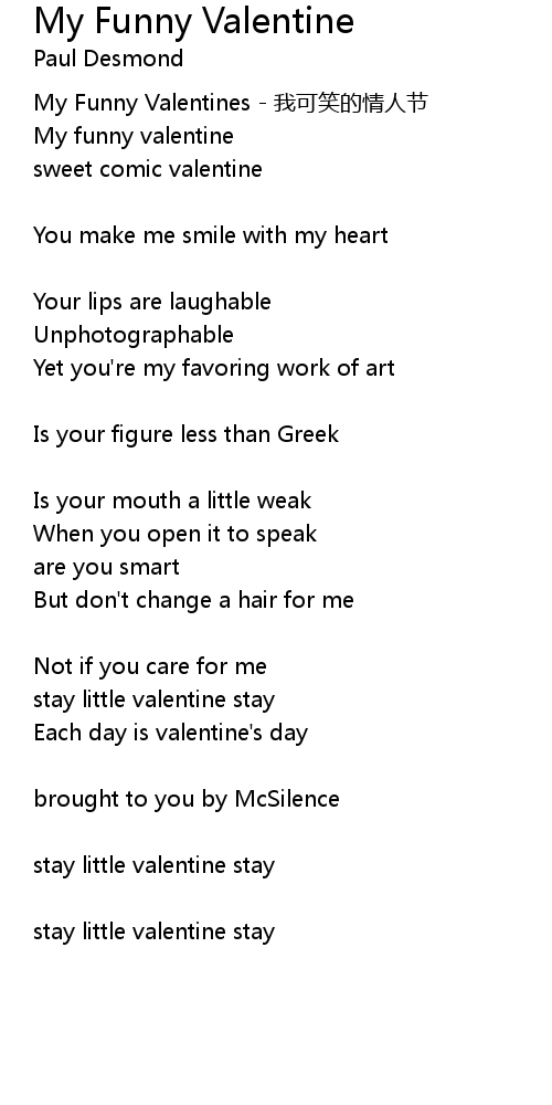 | My Funny Valentines wǒ kě xiào de qíng rén jié | |