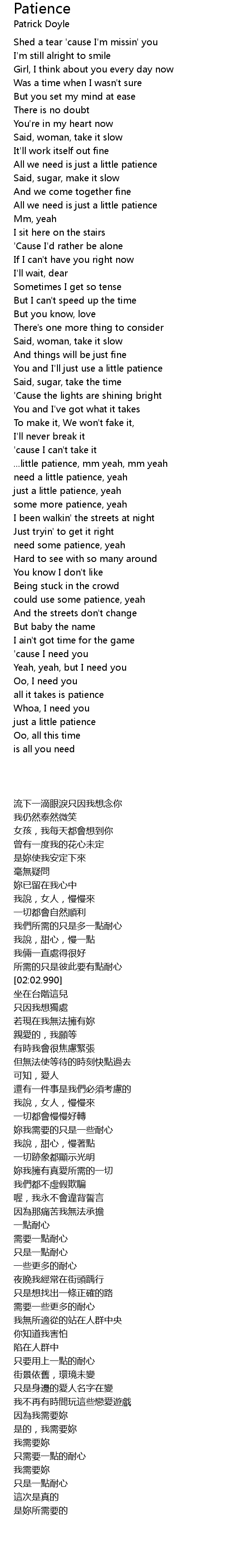 Patience Lyrics