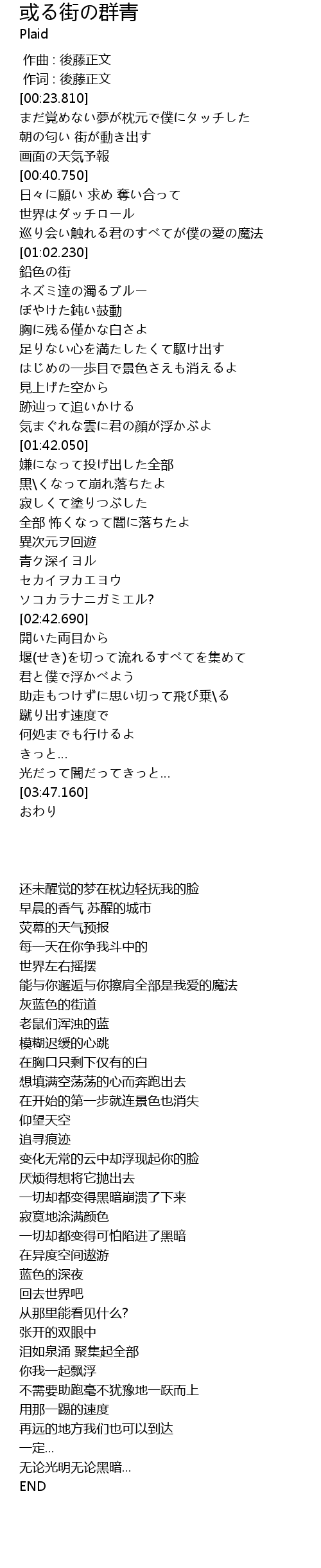 | [00:31.120] | 朝の匂い 街が動き出す |