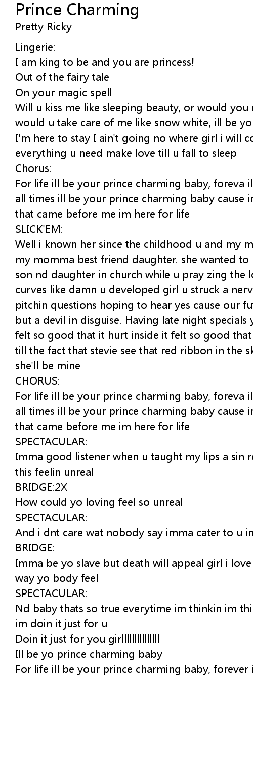 For life ill be your prince charming baby, foreva ill be everything u need for all times ill be your prince charming baby cause im nothing like the other ones that came before me im here for life |