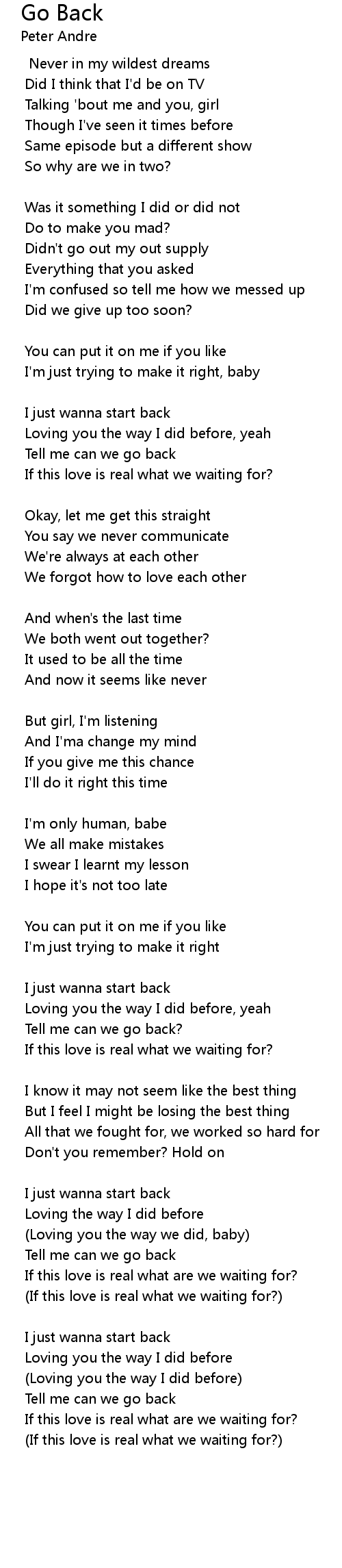 Go Back Lyrics