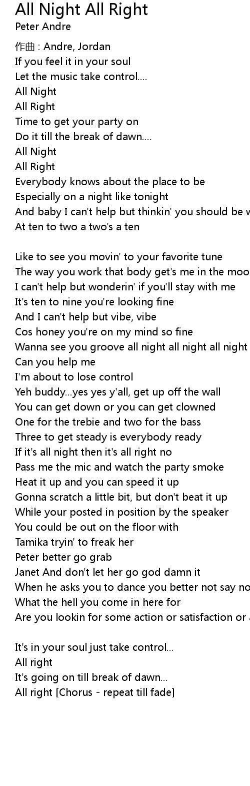 | If it' s all night then it' s all right no | |