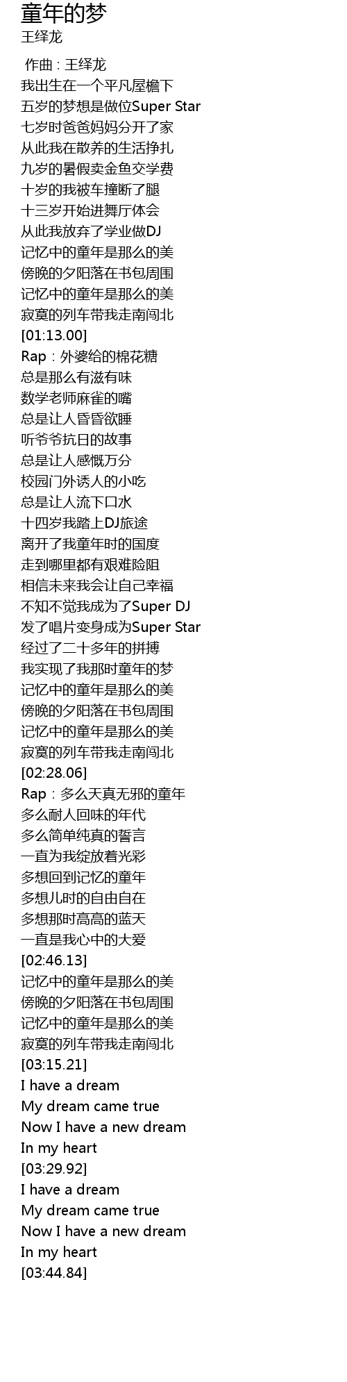 | [01:57.18] | 我实现了我那时童年的梦 |