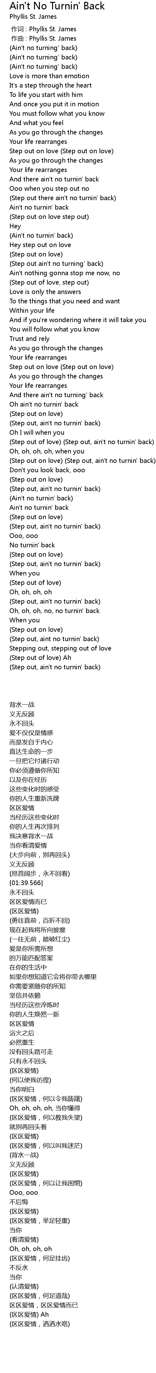 | [02:59.736] | Step out of love Step out, ain' t no turnin' back |