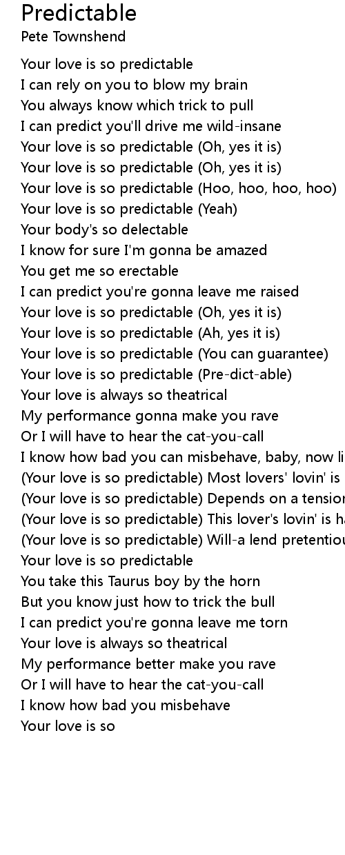(Your love is so predictable) Will-a lend pretentious to the matter of fact |