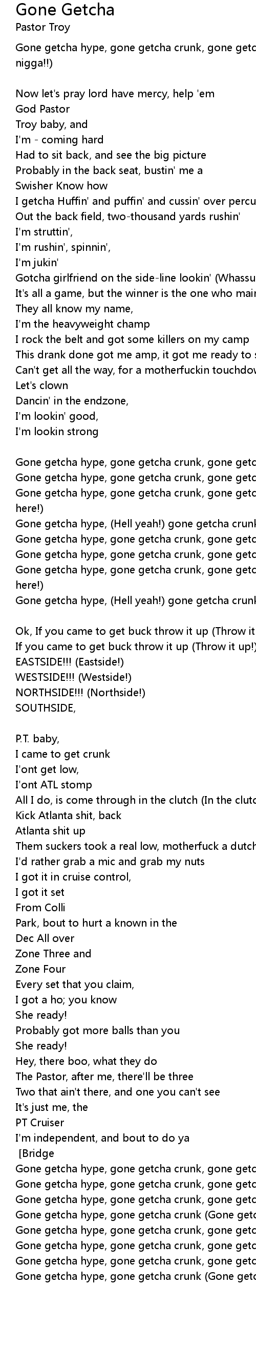 Gone getcha hype, gone getcha crunk, gone getcha buck, nigga (I'm P-Troy nigga!!) |