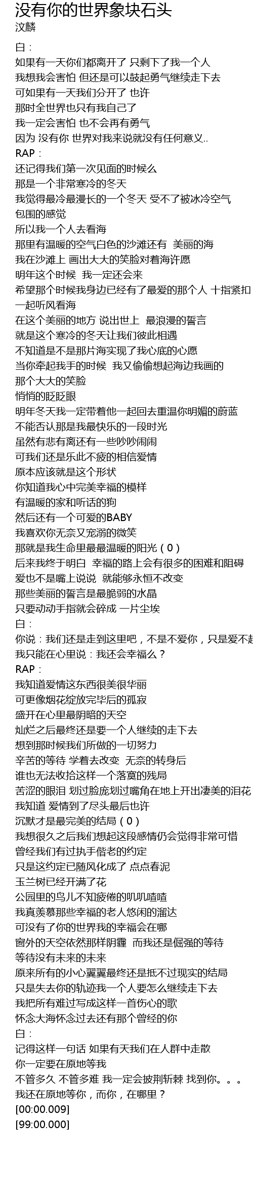 | [00:31.75] | 因为 没有你 世界对我来说就没有任何意义.. |