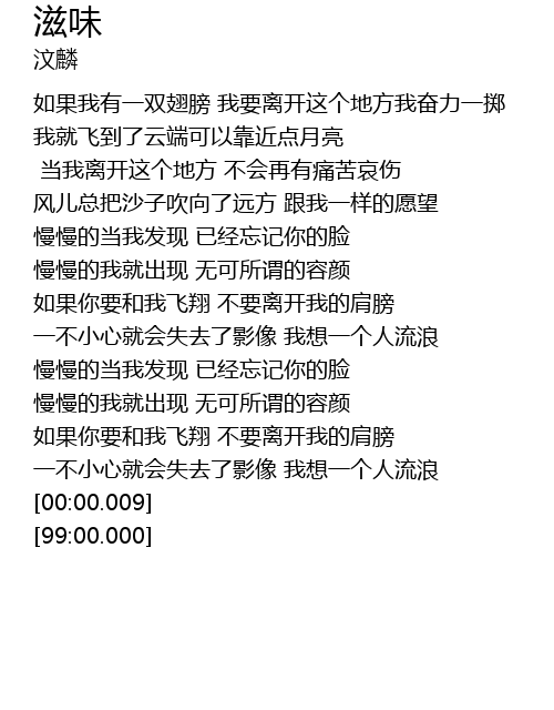 | [01:58.96] | 一不小心就会失去了影像 我想一个人流浪 |