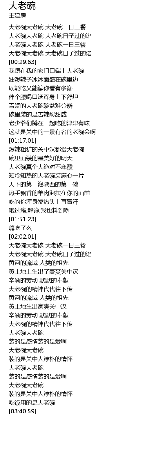 | [02:35.91] | 大老碗大老碗 大老碗一日三餐 |