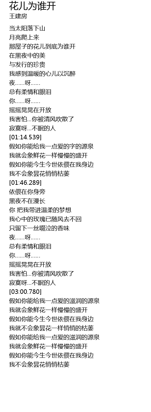 | [00:28.020] | 那屋子的花儿到底为谁开 |